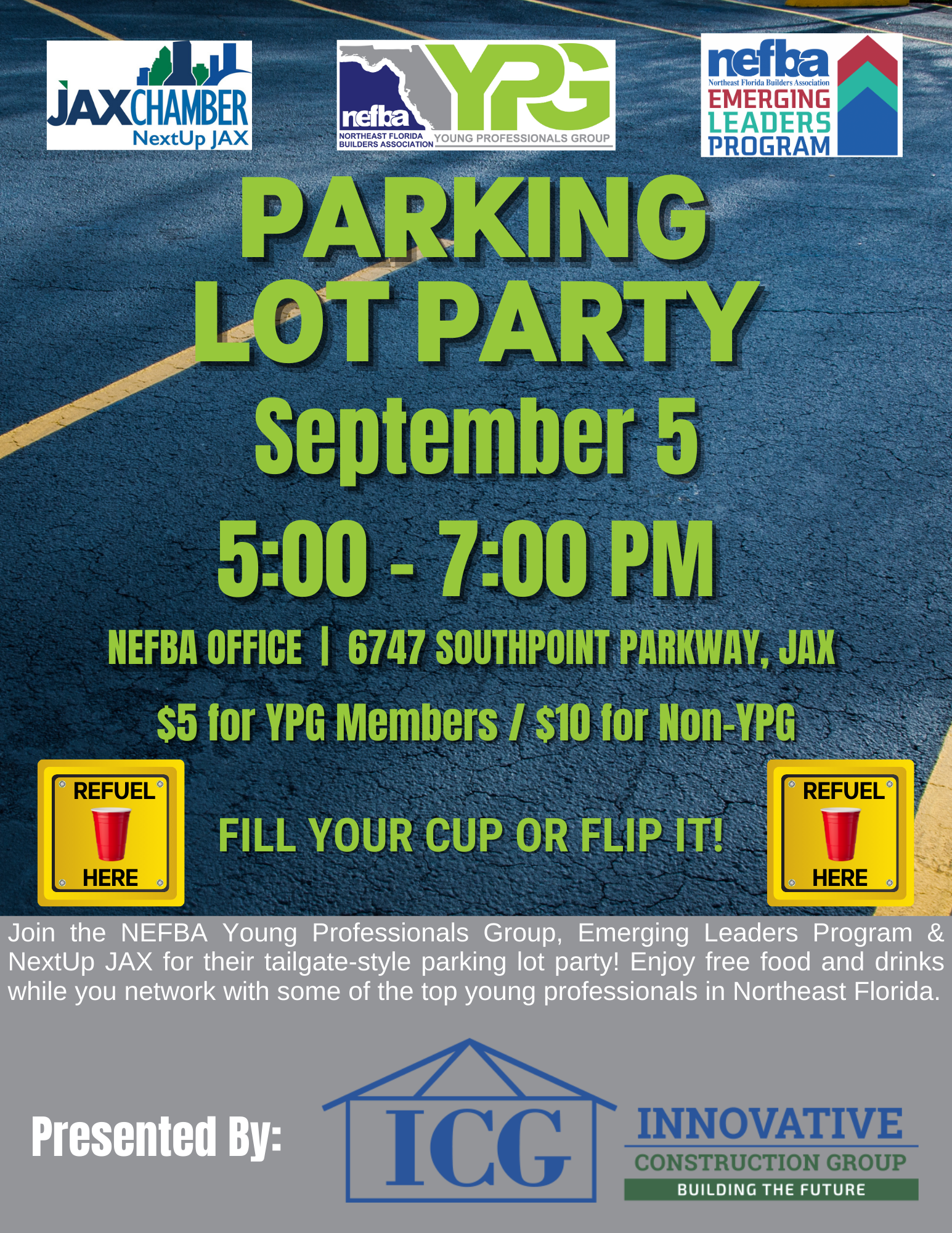 Join NEFBA's Young Professionals Group (YPG), Emerging Leaders Program (ELP), and the Jacksonville Chamber's NextUp JAX for an evening of games, networking, and unlimited food and drinks!