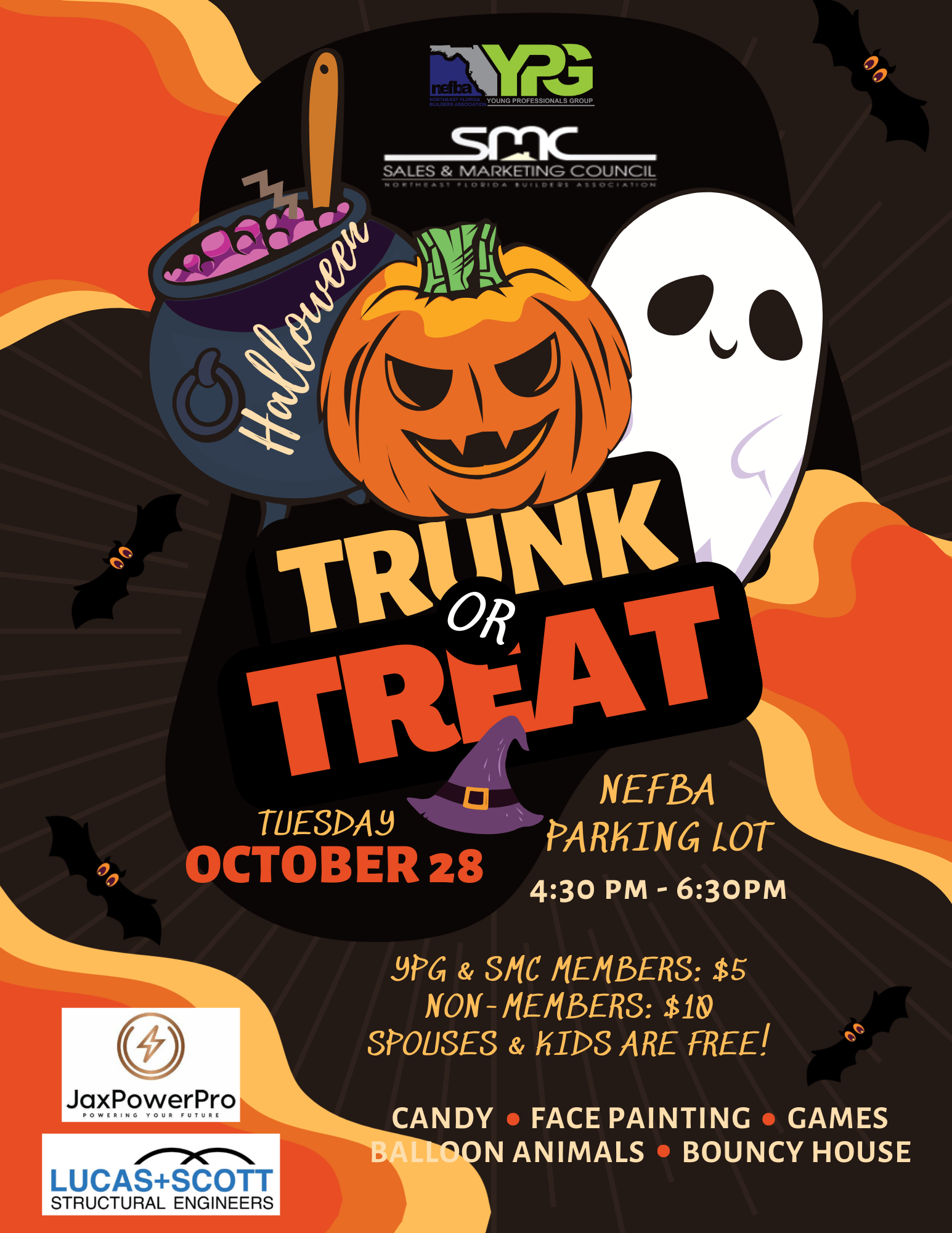 Join NEFBA's Young Professionals Group (YPG) and Sales & Marketing Council (SMC) for our 2nd Annual Trunk-Or-Treat! This family friendly event will include trick-or-treating from trunk to trunk of each decorated car. There will be free candy, face painting, balloon animals, Kona Ice, and a bouncy house too!